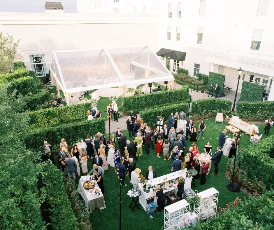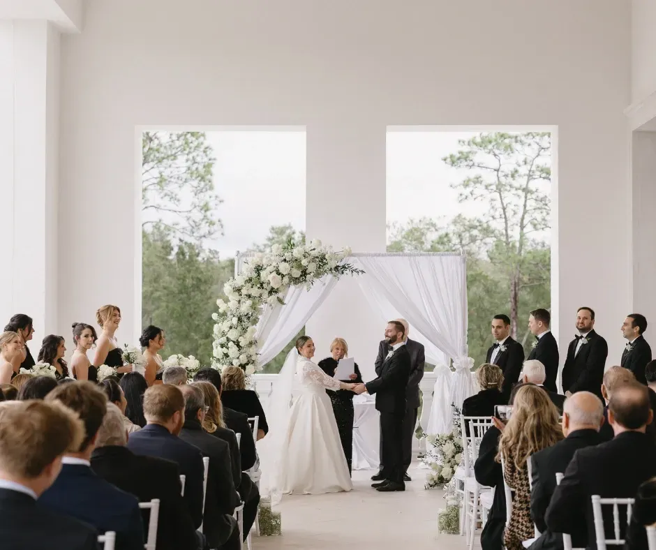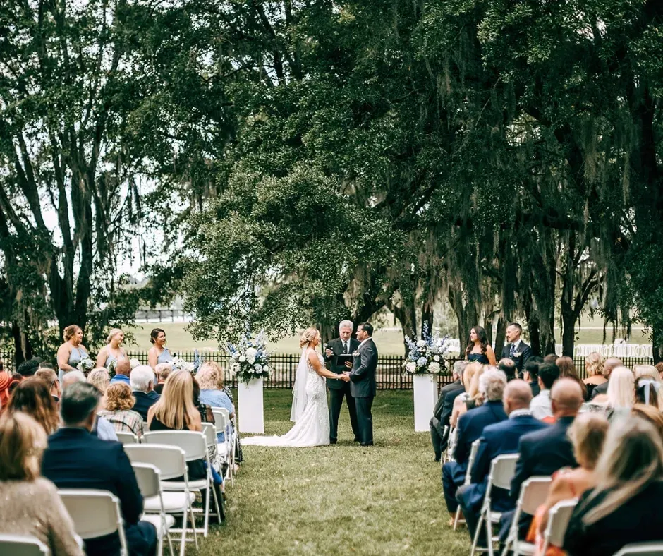 From an oak-canopied stone chapel to grand ballrooms, elegant gardens, and covered outdoor terraces, couples can choose (or mix) settings that match their exact vision.
